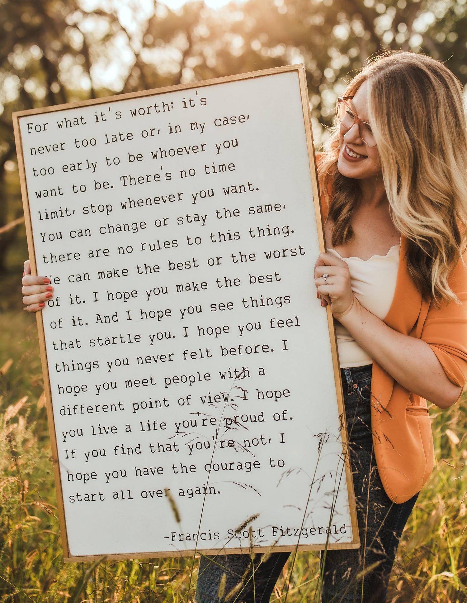 When I decided to make a career change, my age was really bothering me. I felt silly for not having “it” figured out. For me, 29 was when I figured “it” out. I decided to include 29 in my business name as a positive reminder that it doesn’t matter what your age is…”it’s never too late… to be whoever you want to be.” -Francis Scott Fitzgerald